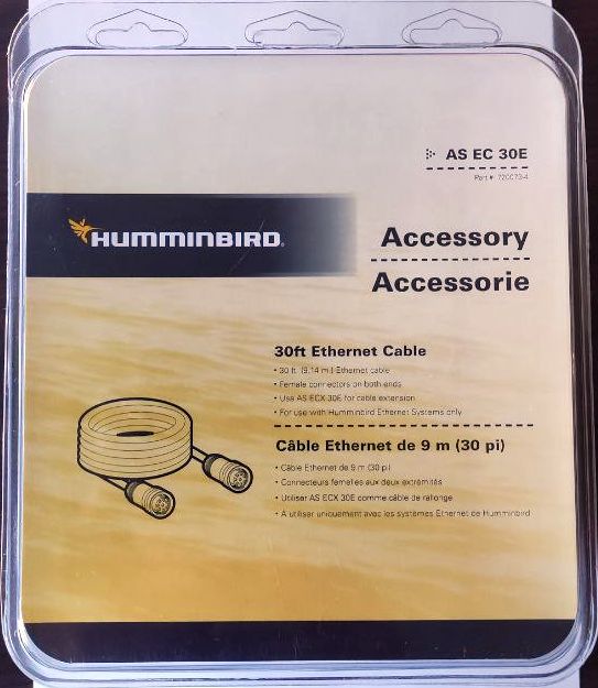 Кабель Ethernet, 30 футов (9 м) предназначен для соединения двух устройств с поддержкой Ethernet или для подключения головного устройства Humminbird к аксессуару «5-портовый Ethernet-коммутатор» (модели AS ETH 5PXG и AS ETH 5PGL) в составе многокомпонентной сети Ethernet.